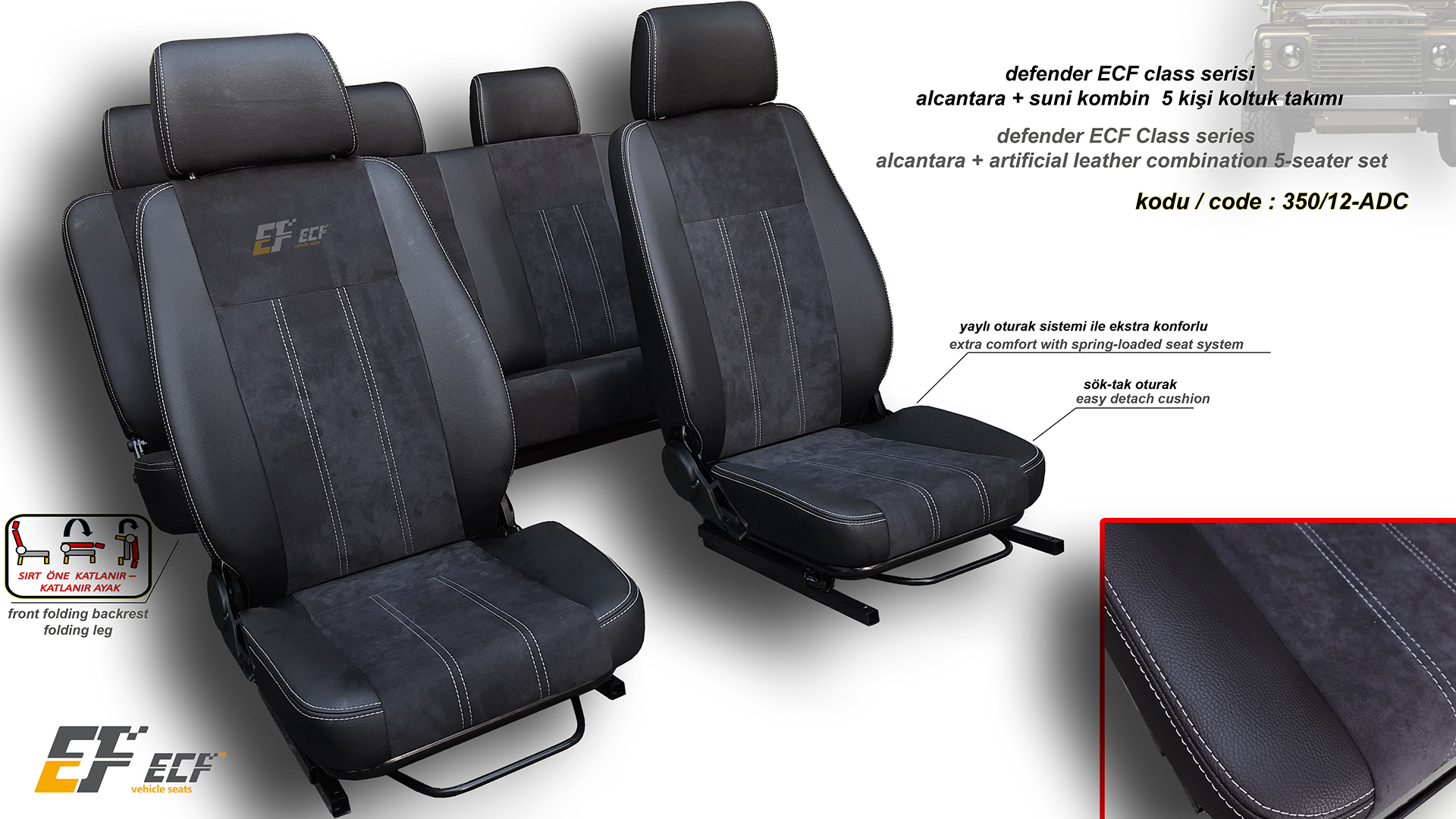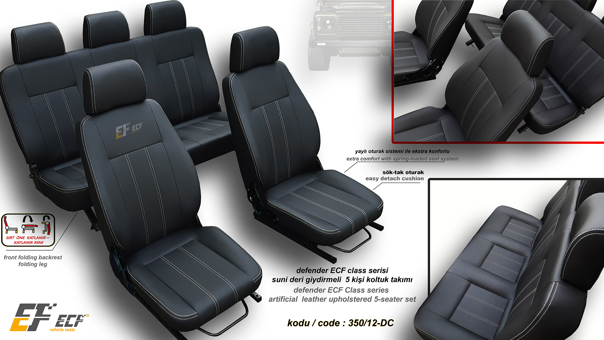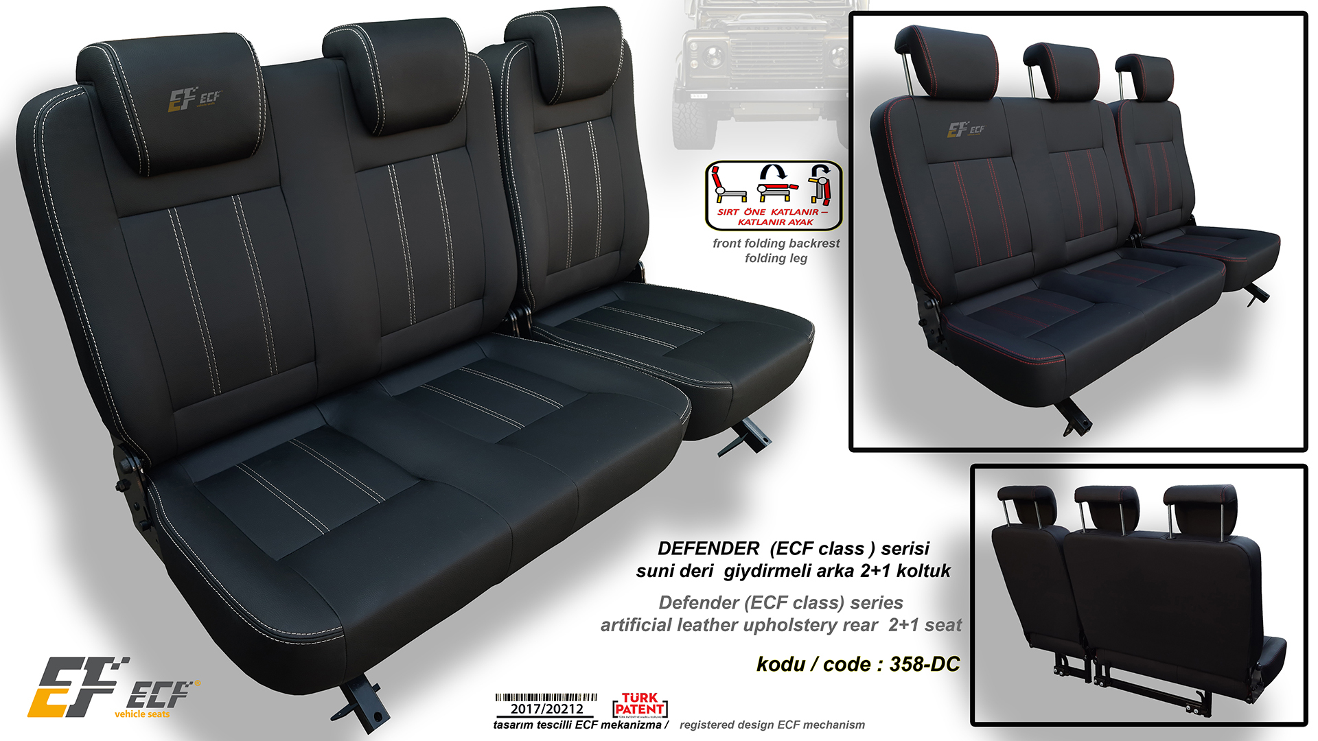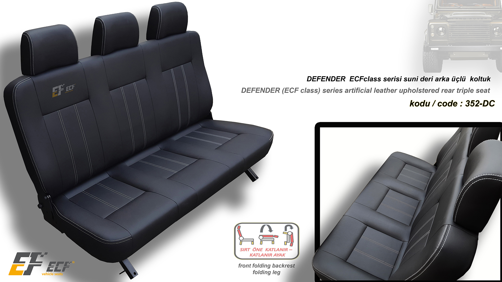 Defender ECF Class series artificial leather upholstery rear 2+1 seat