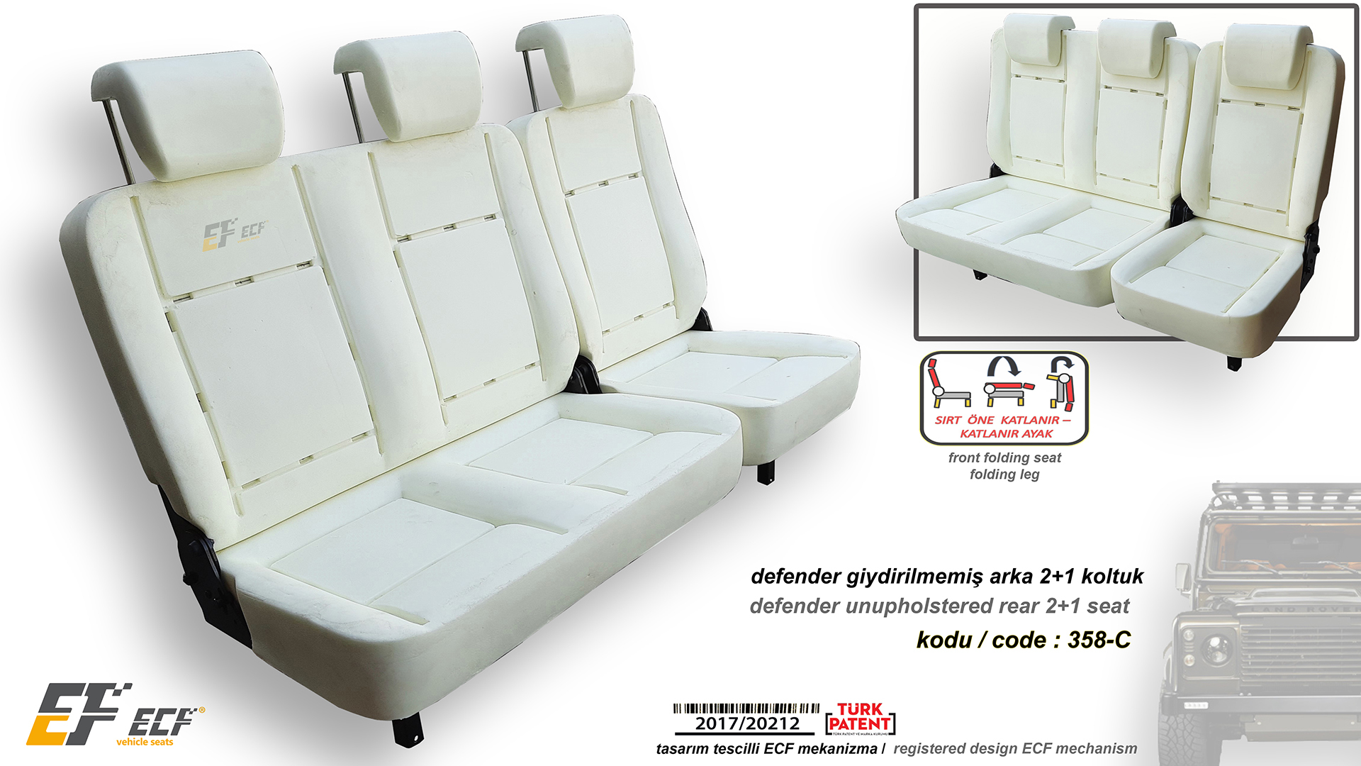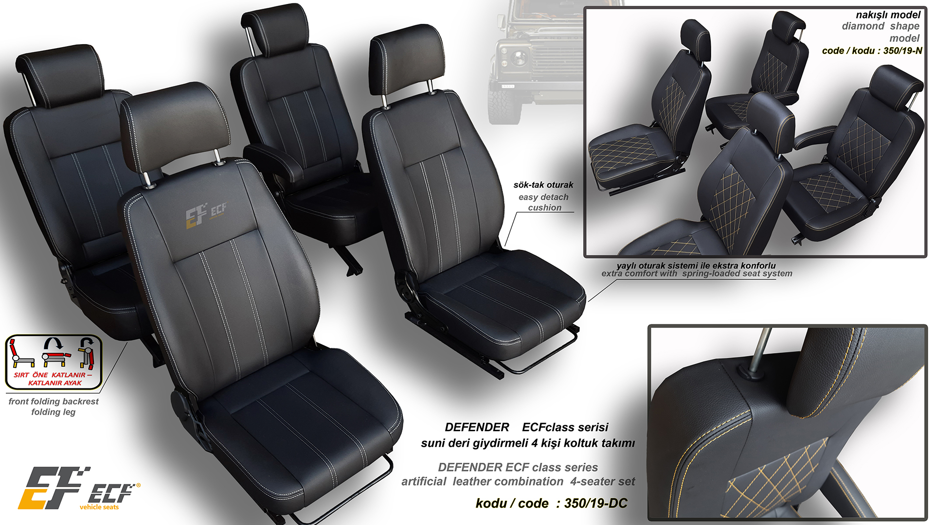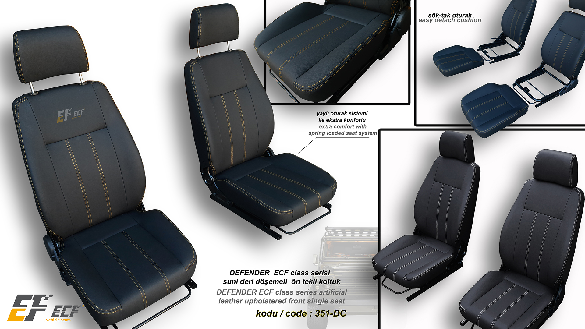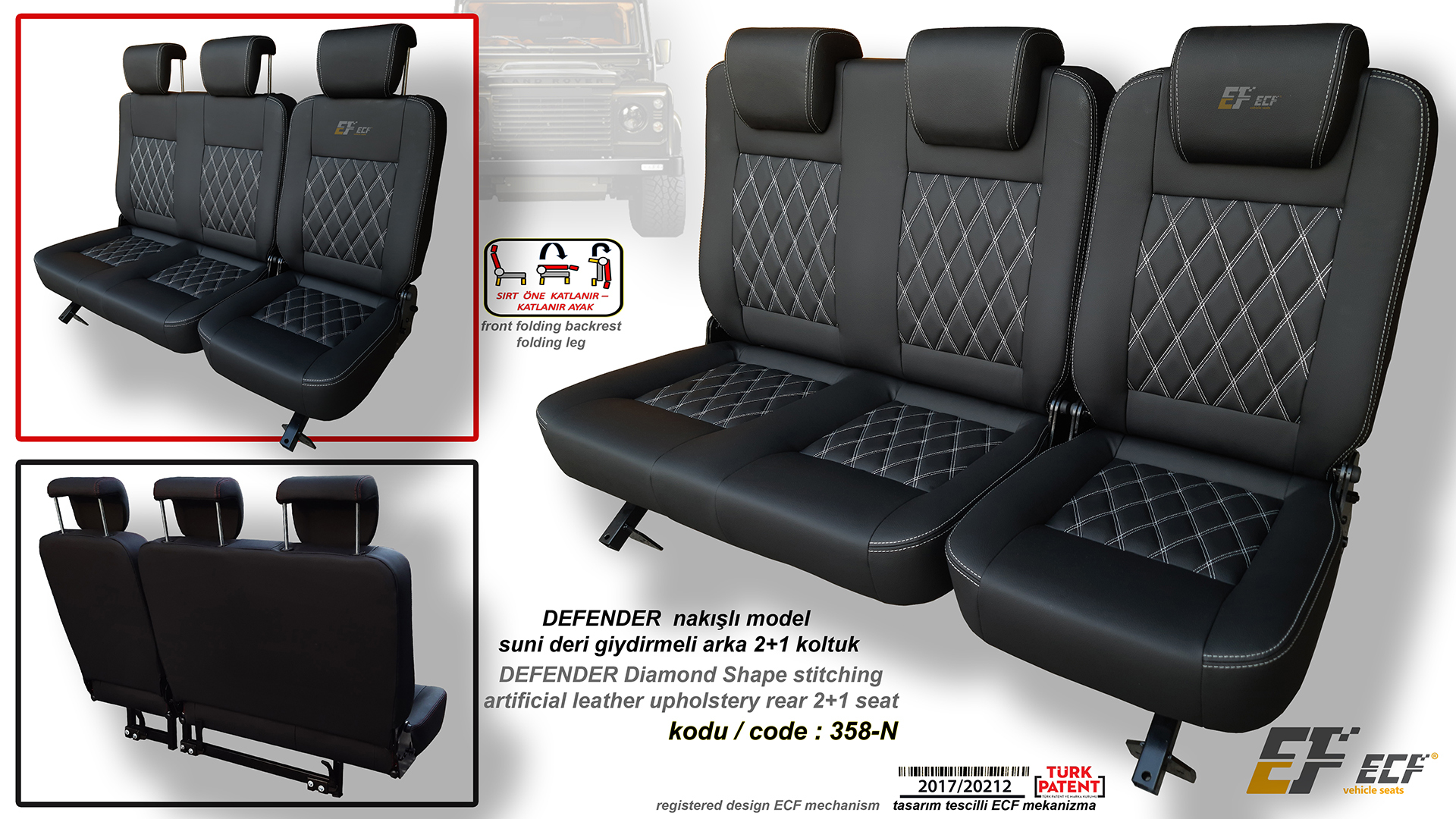 Defender ECF Class series artificial leather upholstery rear 2+1 seat