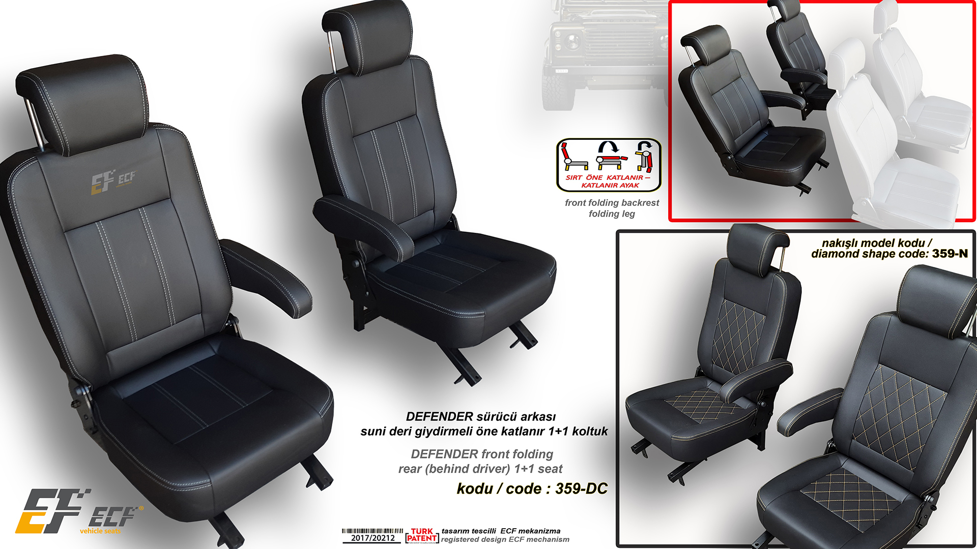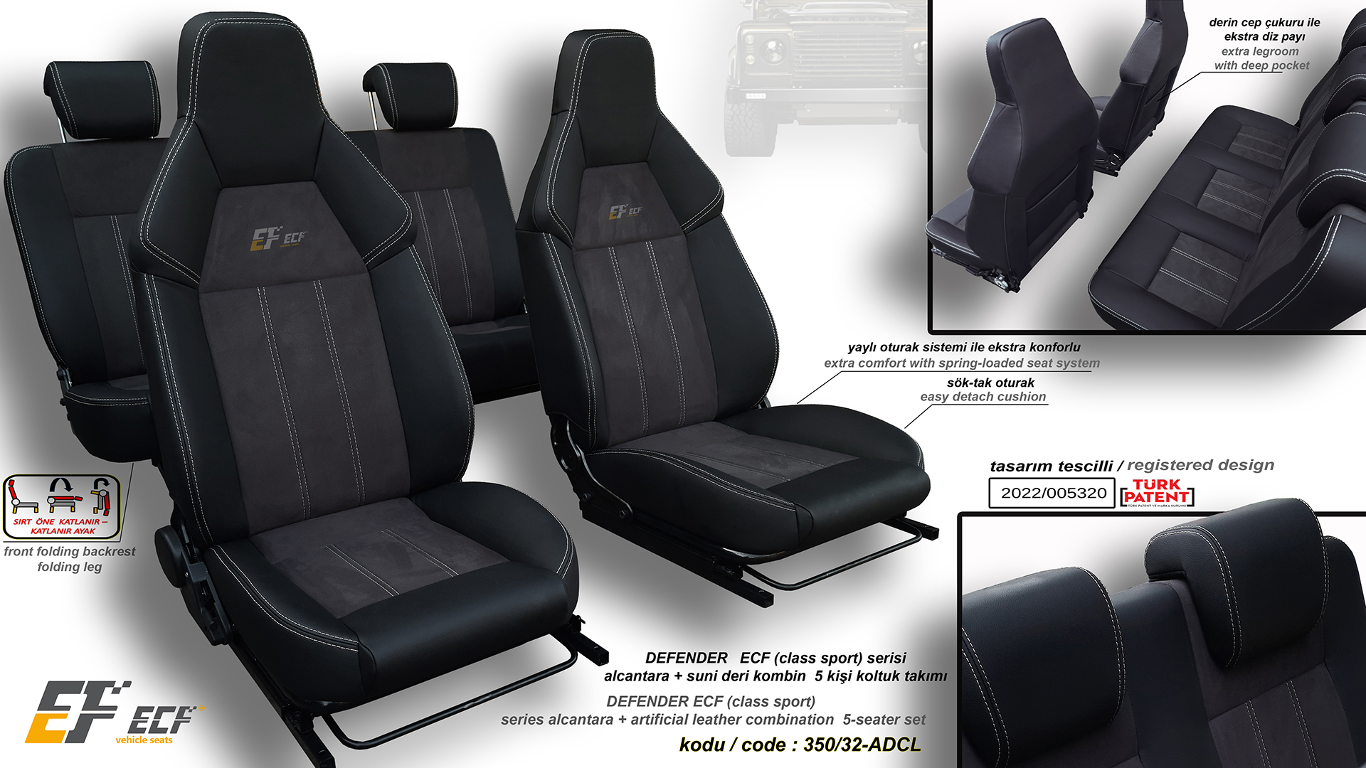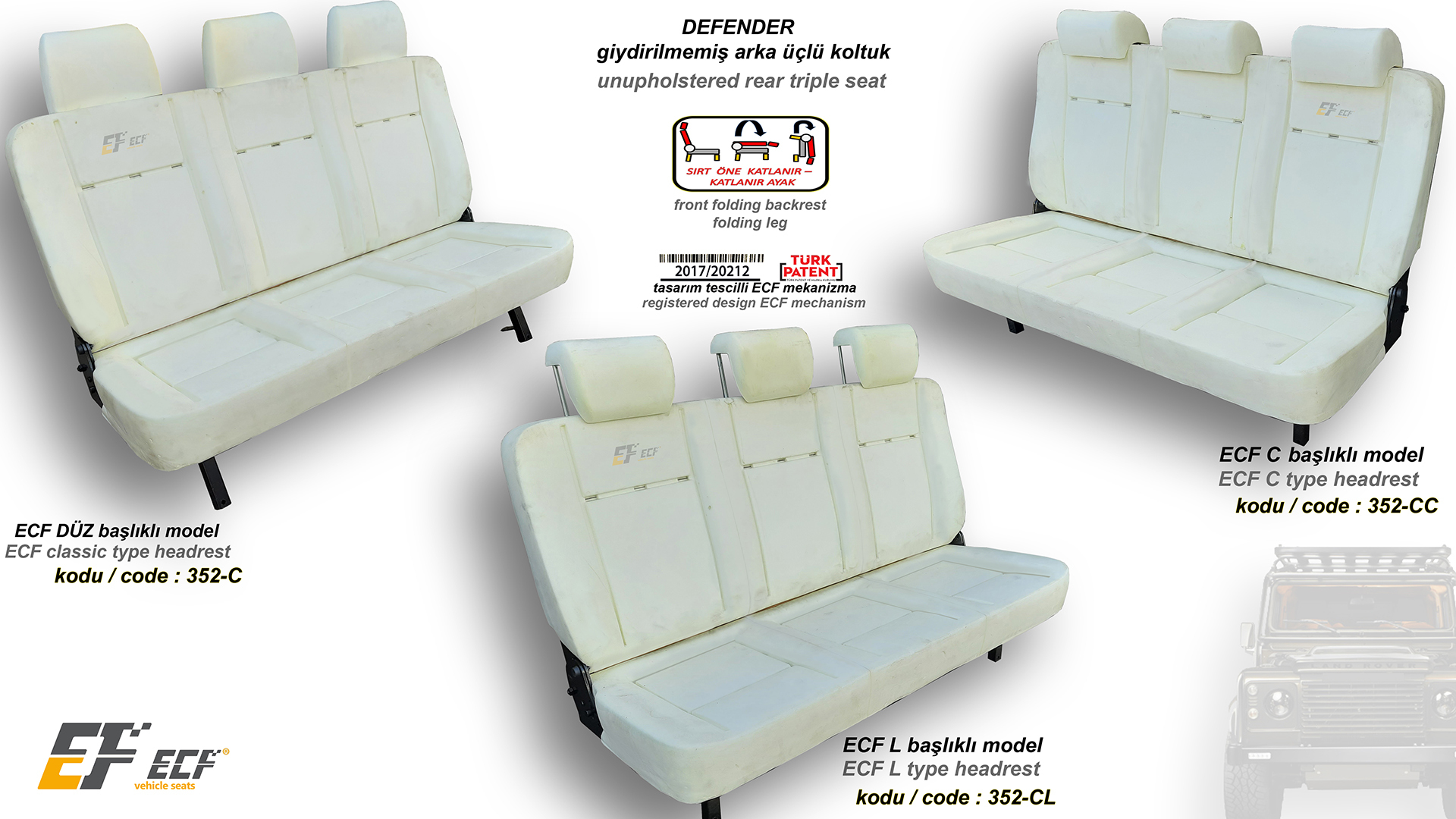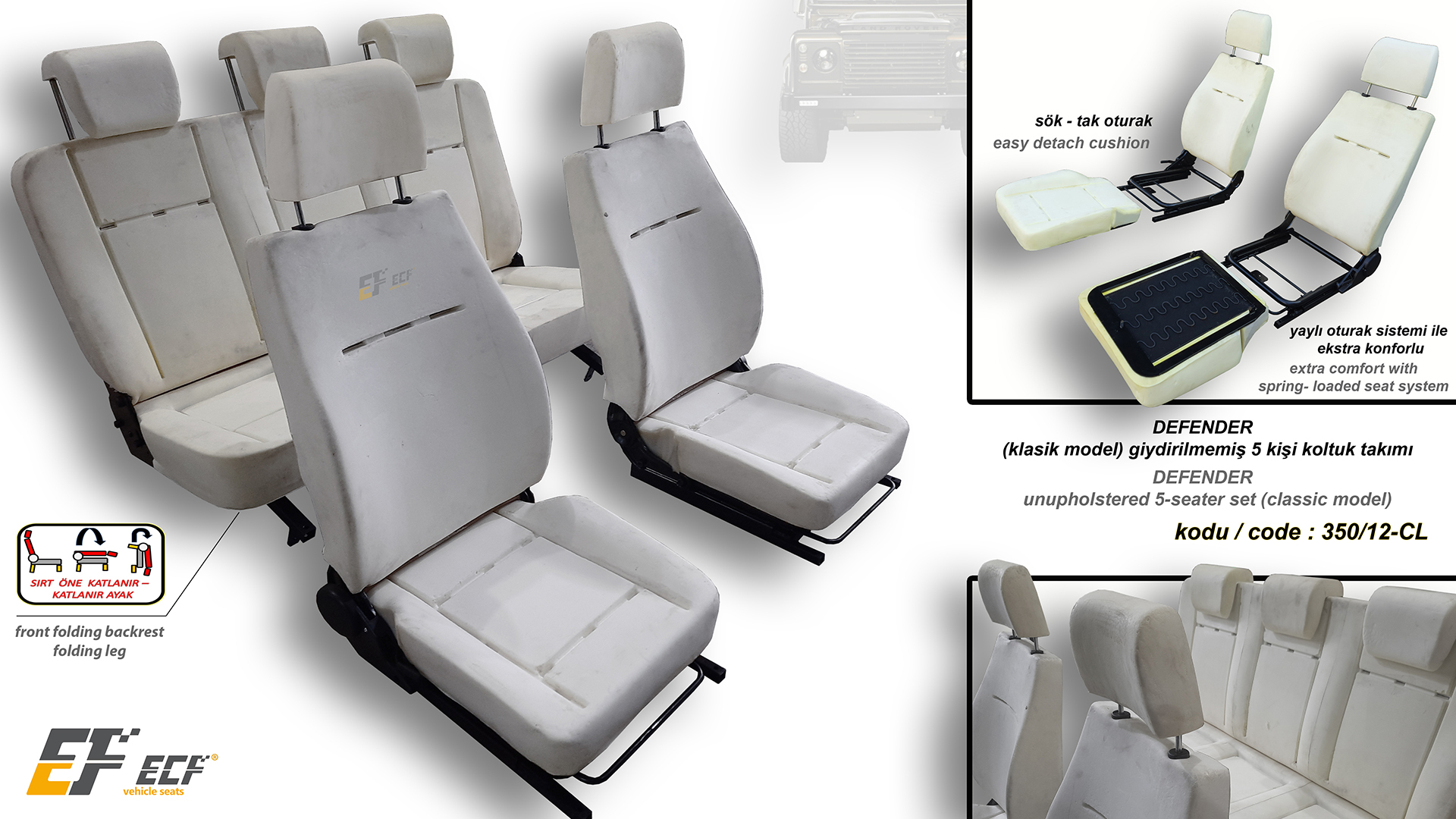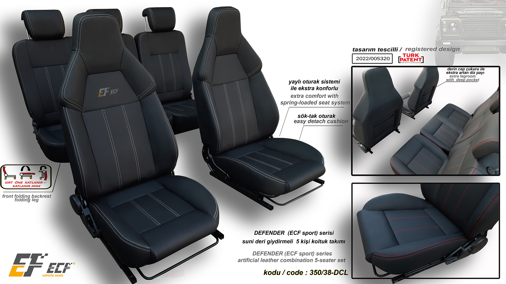 Defender ECF Class series artificial leather upholstery rear 2+1 seat