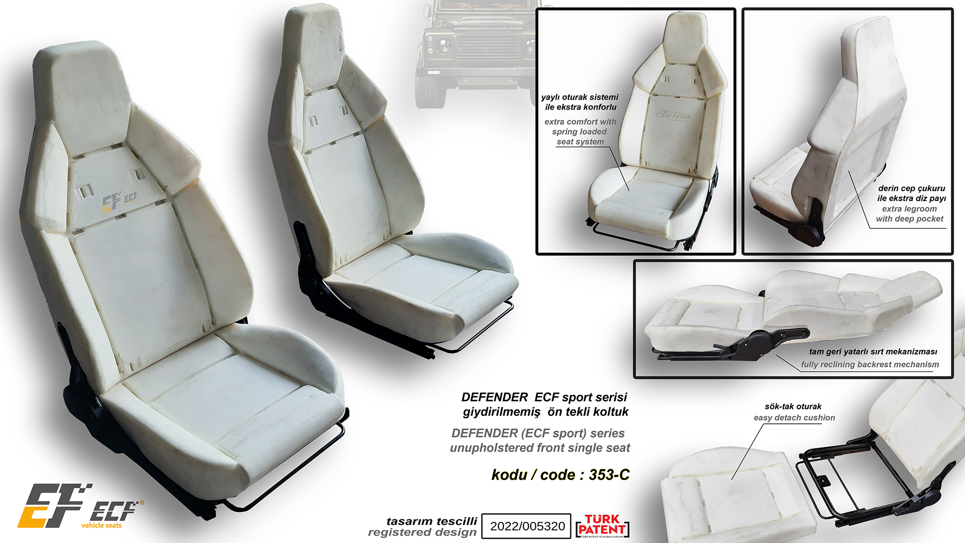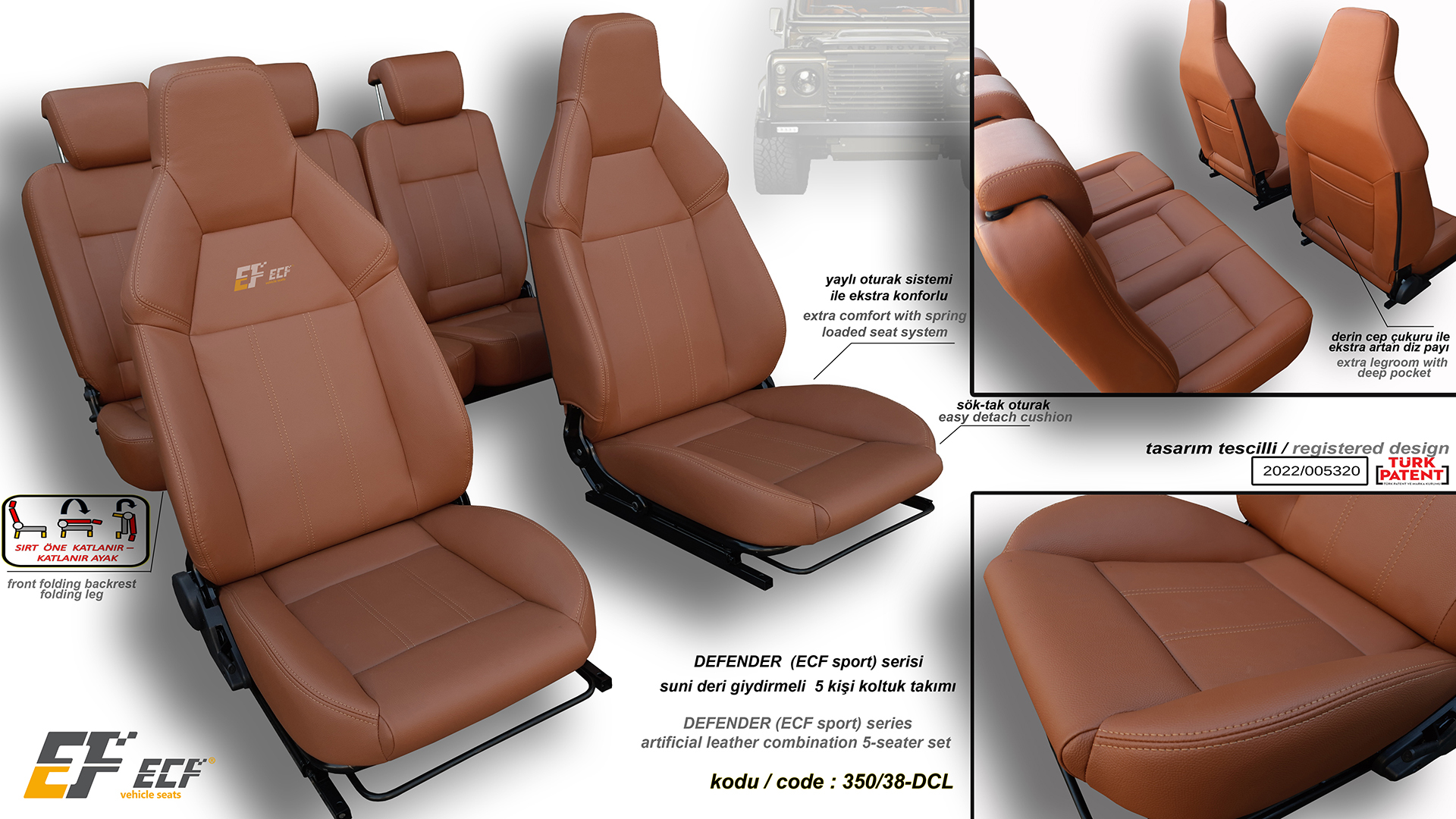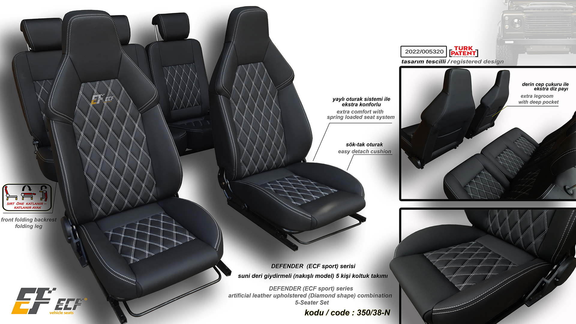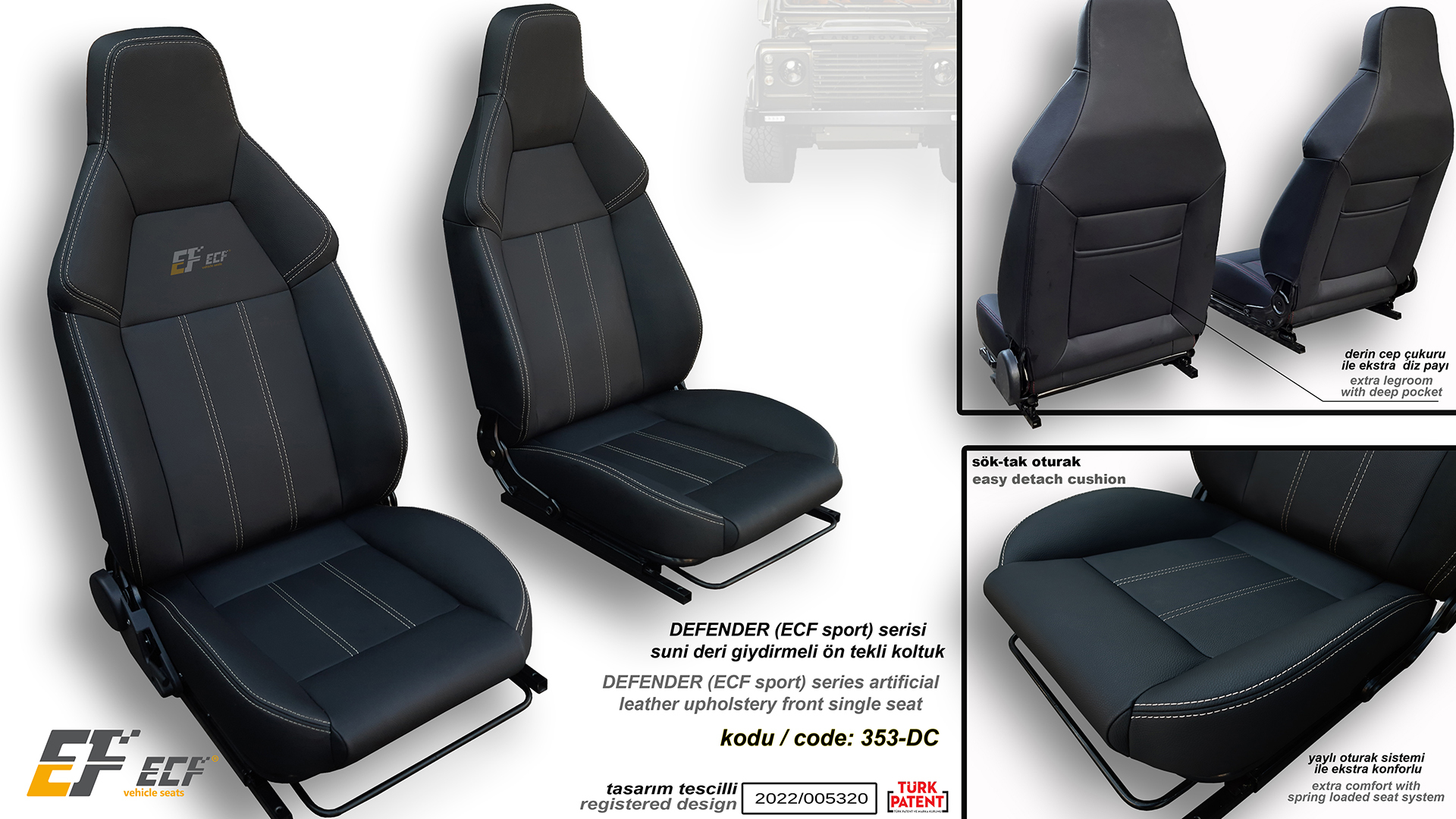 Defender ECF Class series artificial leather upholstery rear 2+1 seat