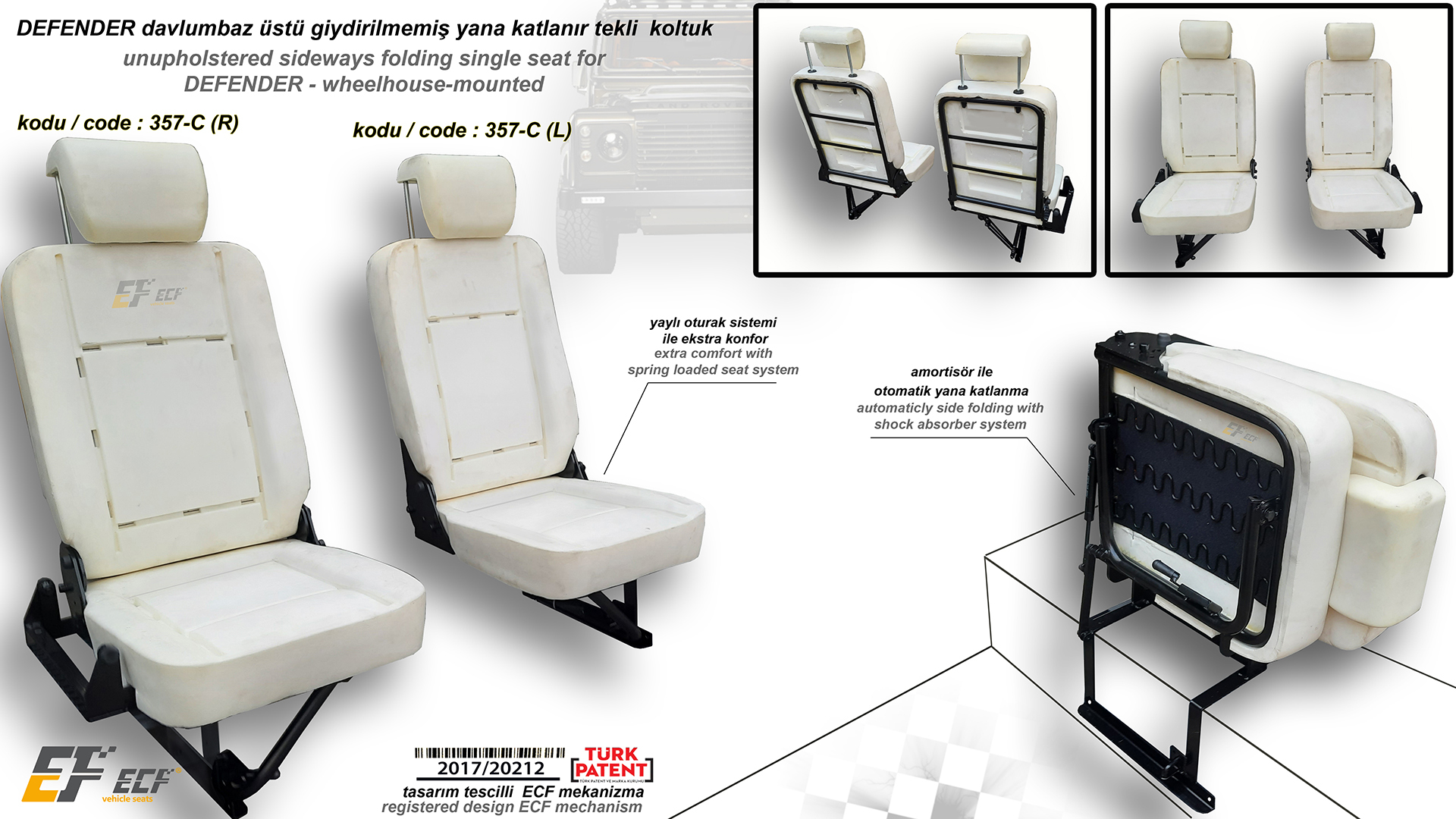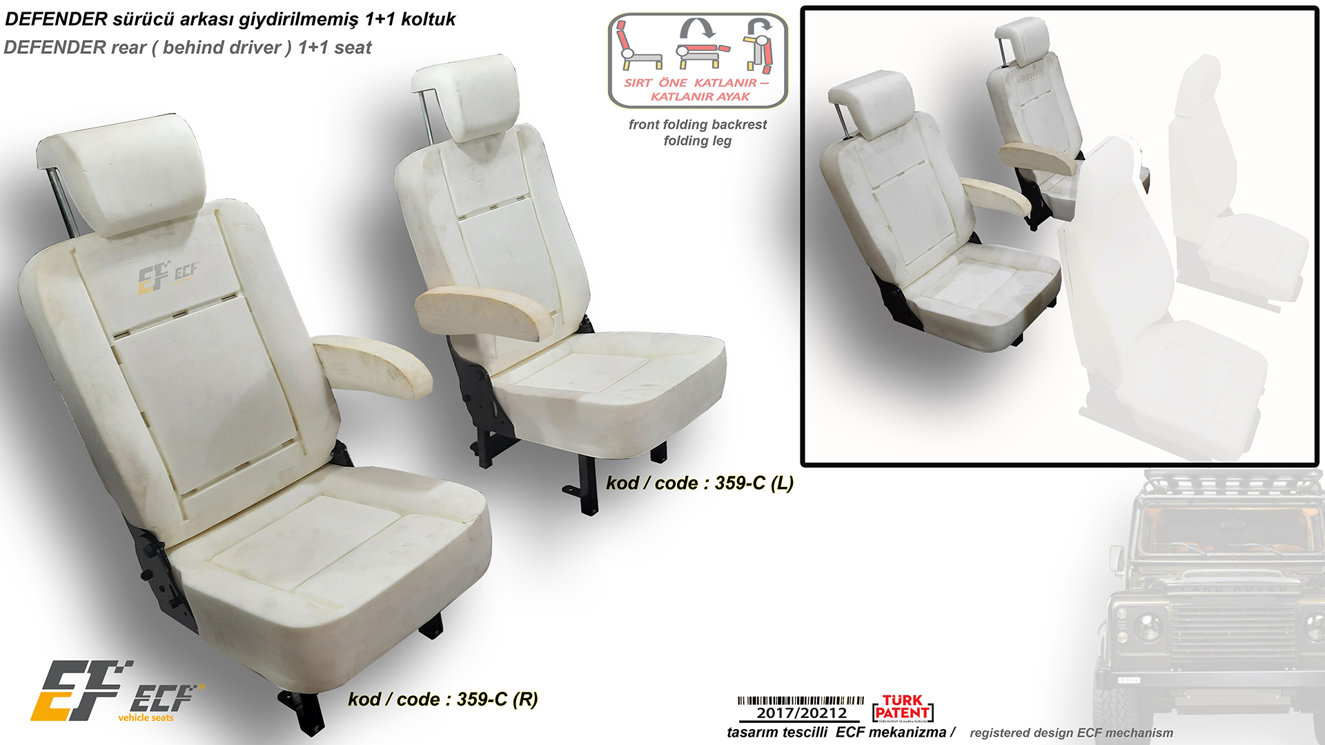 Defender front folding rear (behind driver) 1+1 seat
