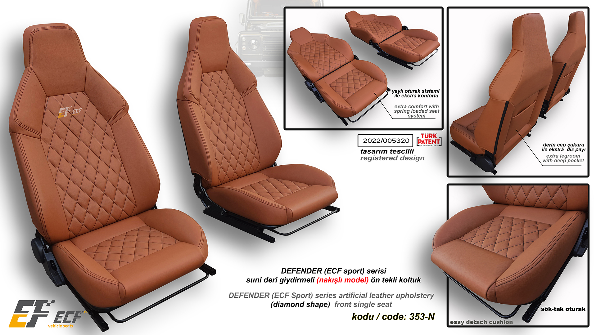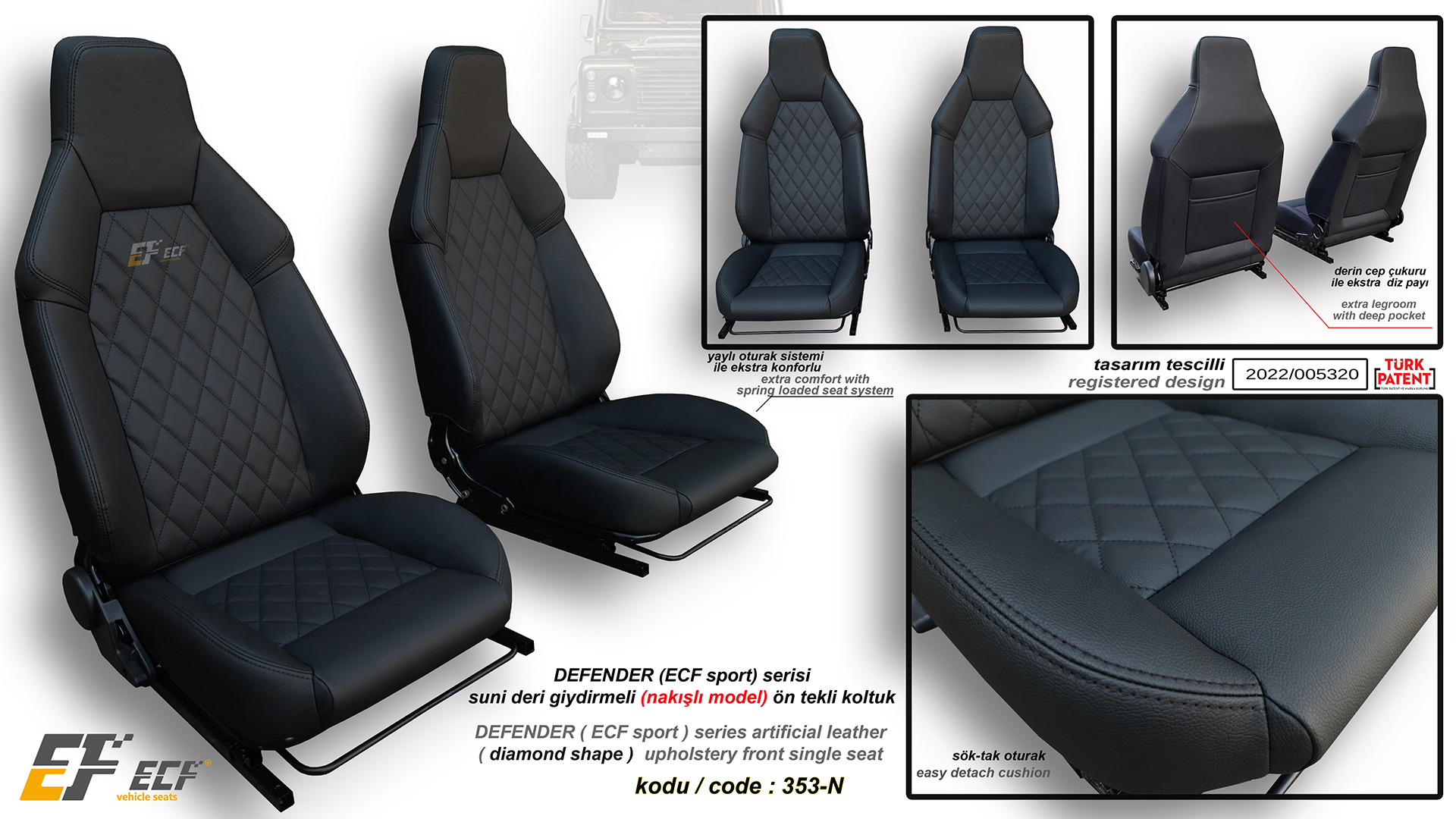 Defender ECF Sport series artificial leather (diamond shape) upholstery front single seat