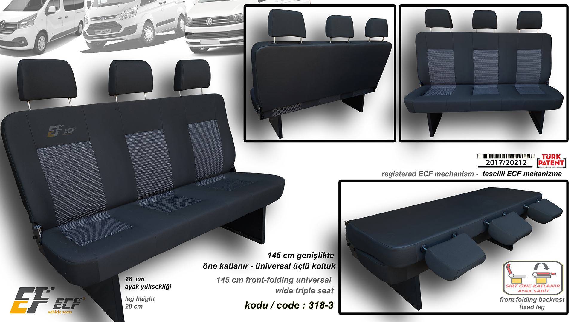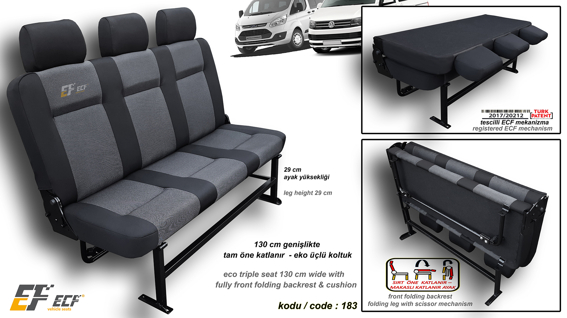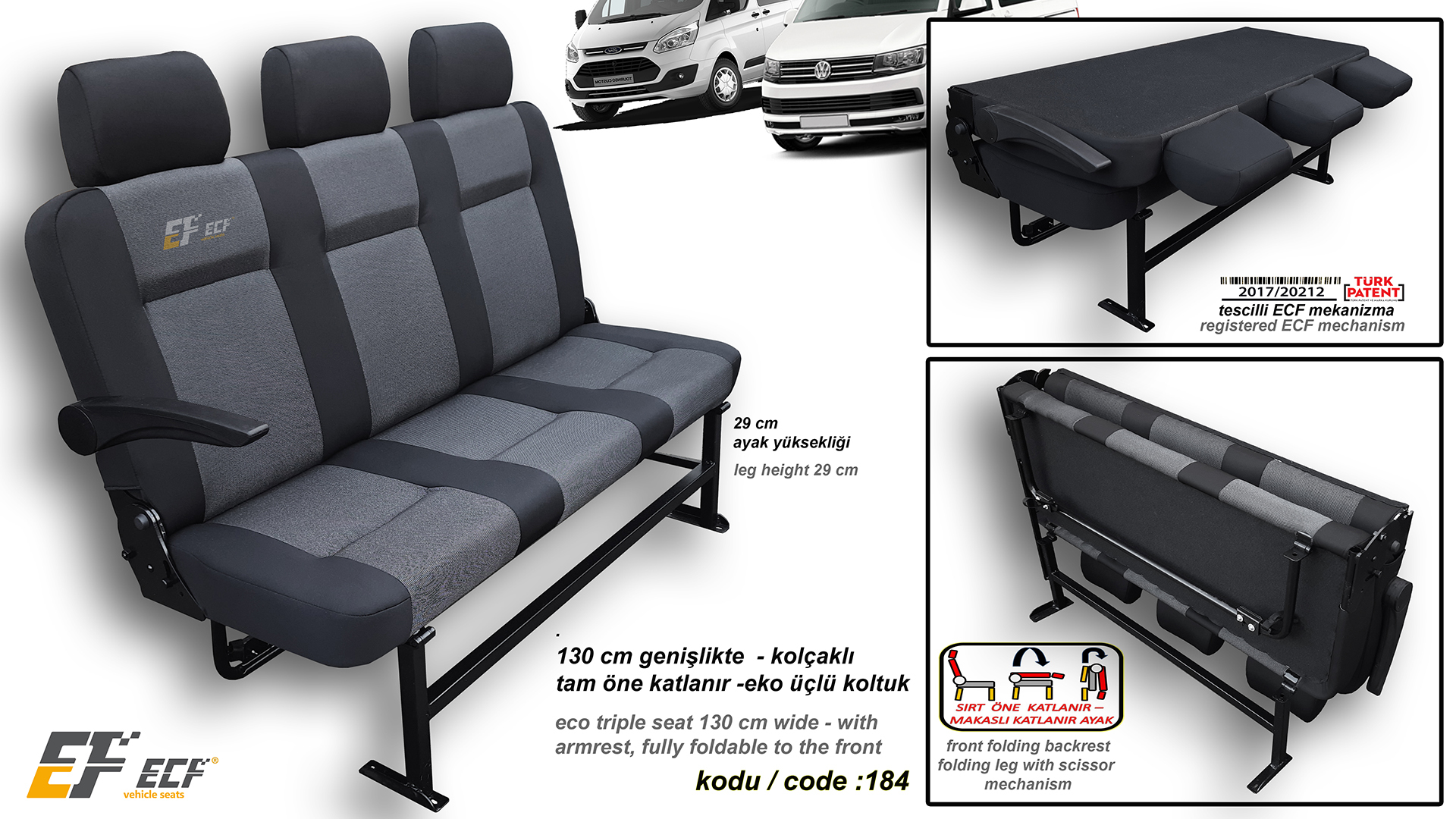 H100, L300, Starex etc 129 cm eco triple seat with fully front foldable and scissor type leg