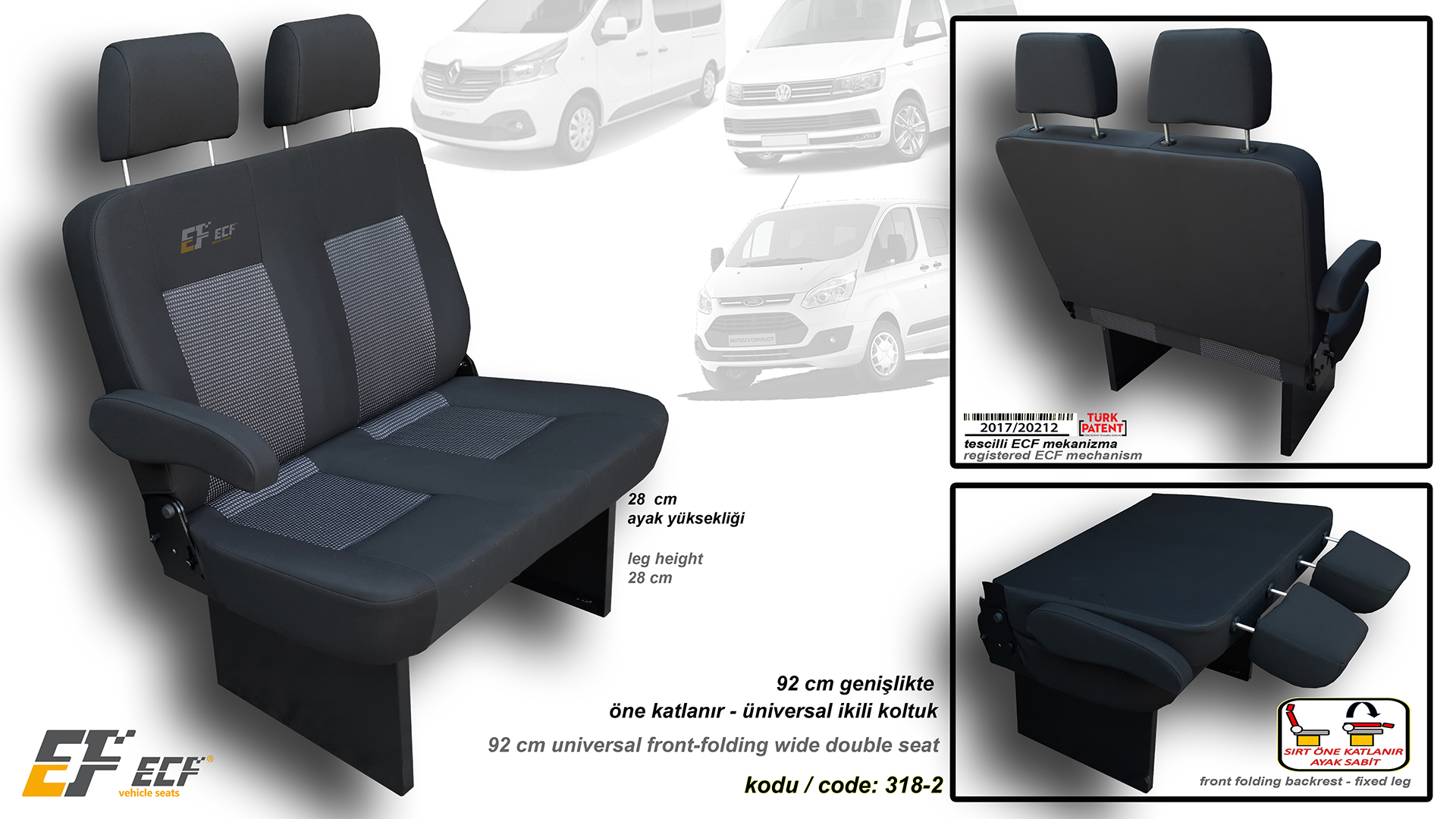 92 cm universal front folding wide double seat