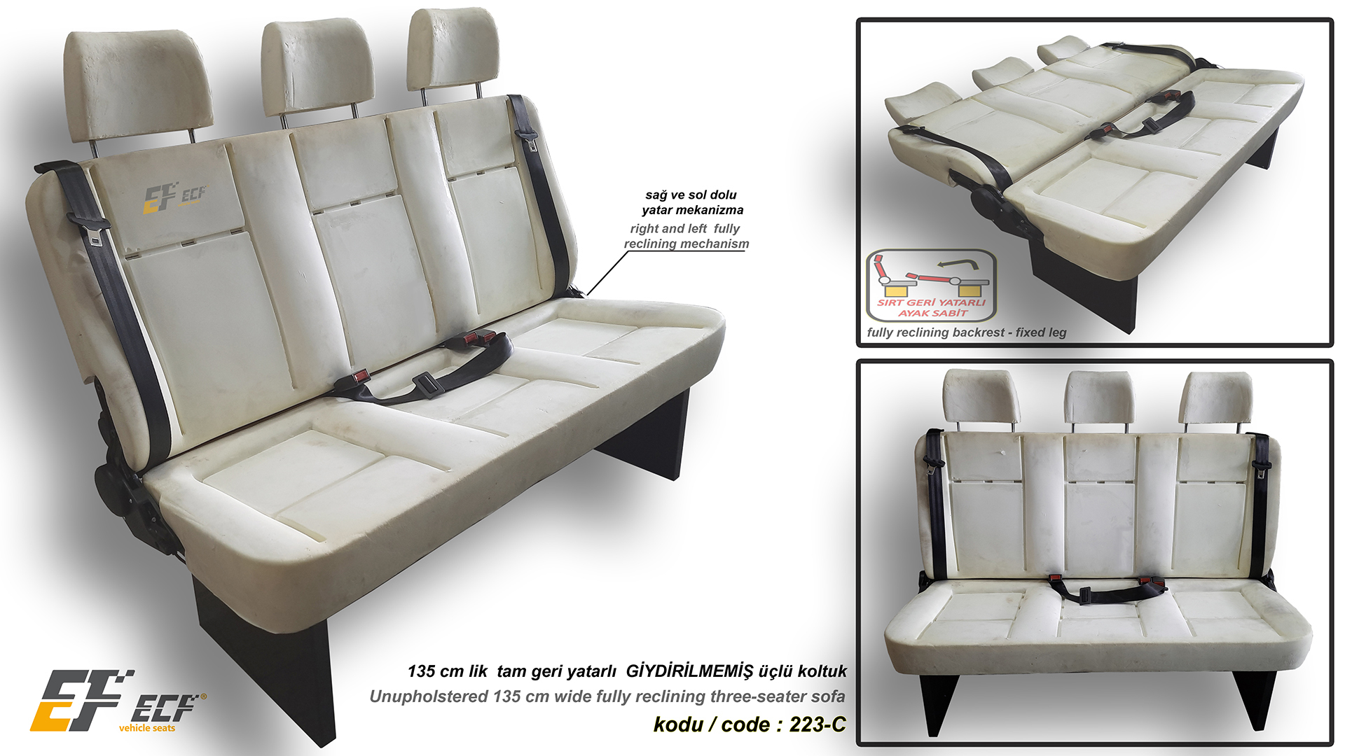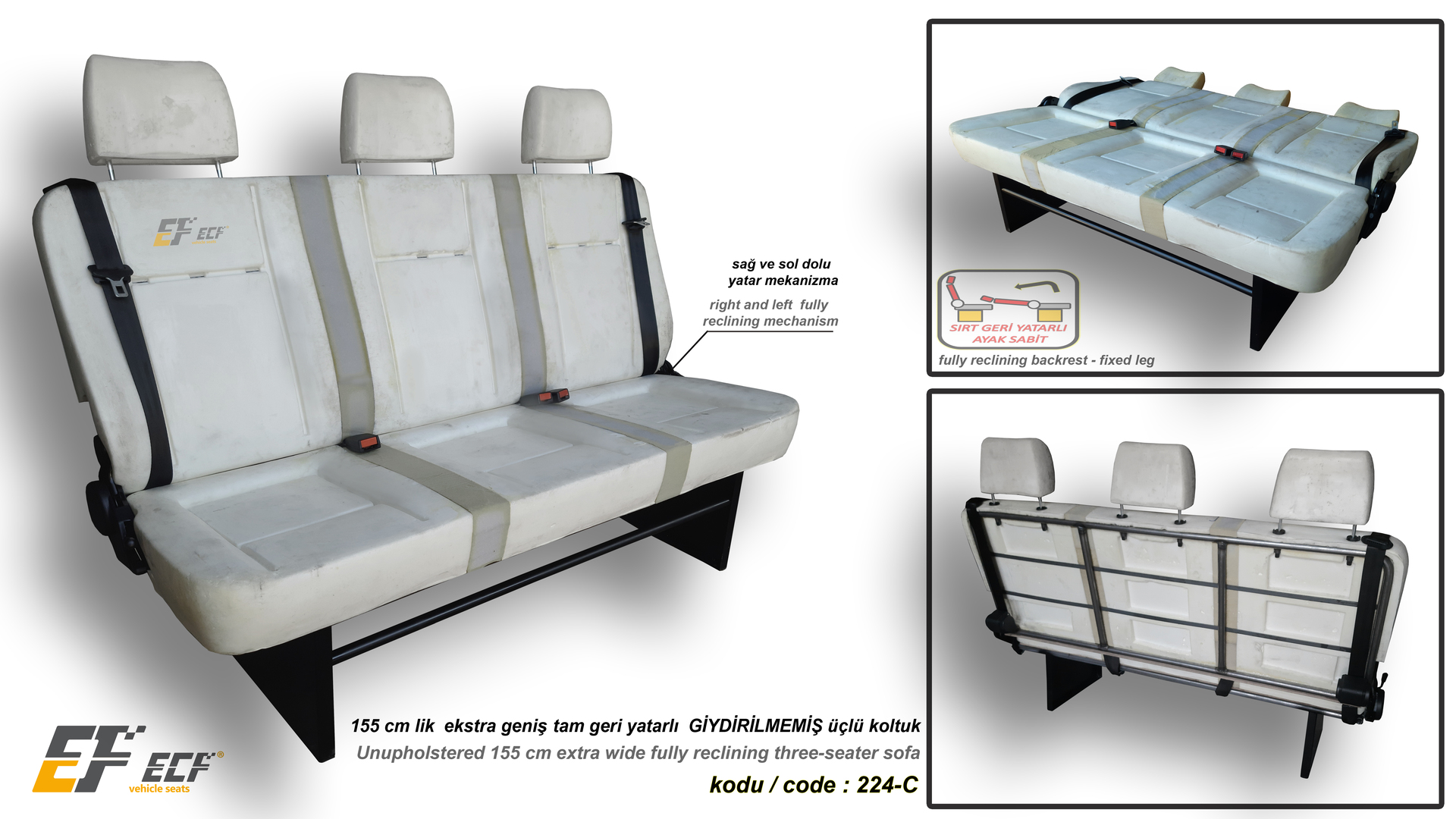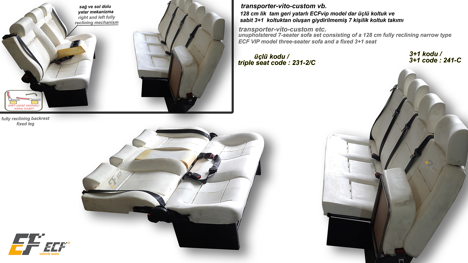 Transporter, Vito, Custom etc Unupholstered 7 seater sofa set consisting of a 128 cm fully reclining narrow type ECF VIP model three seater sofa and a fixed 3+1 seat