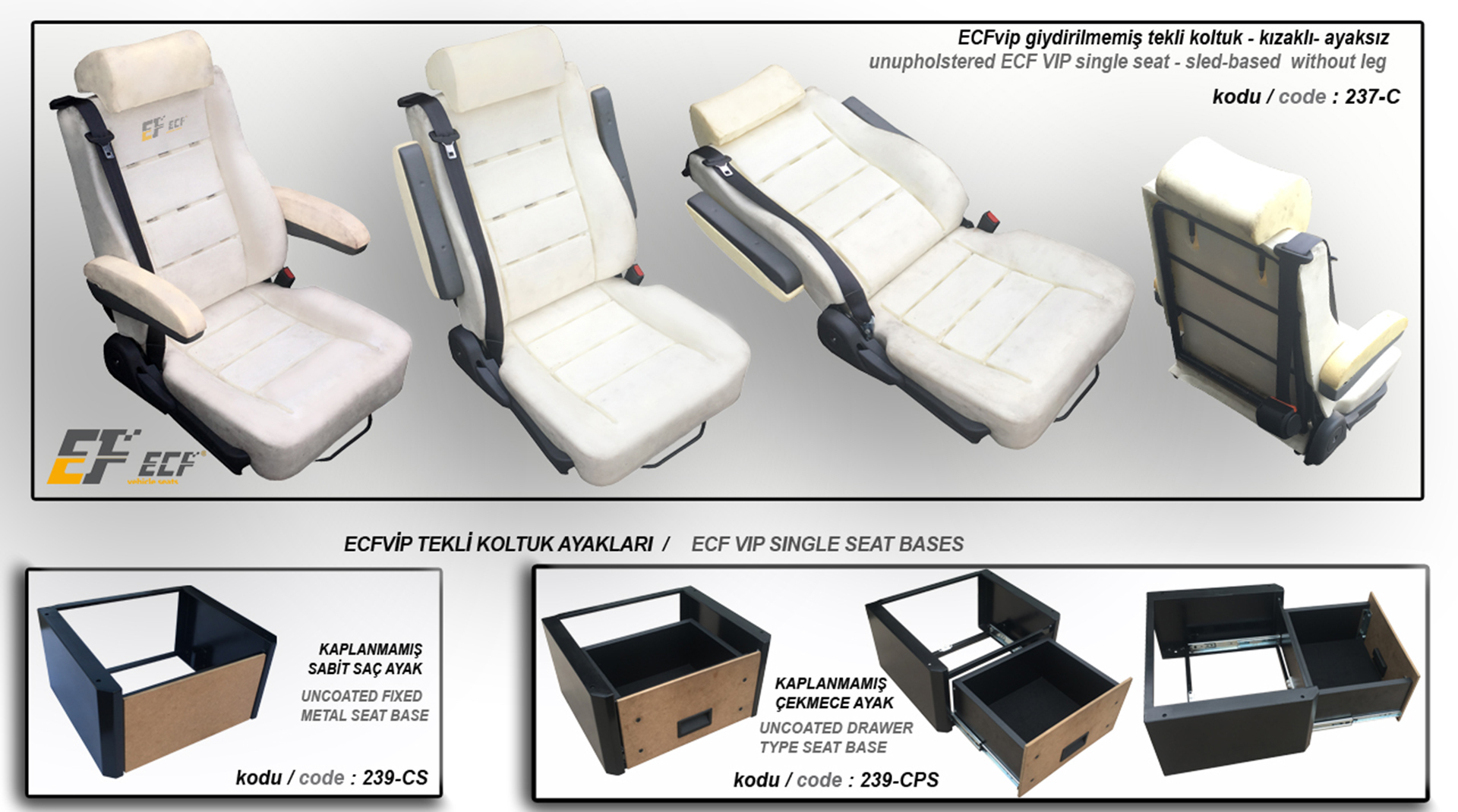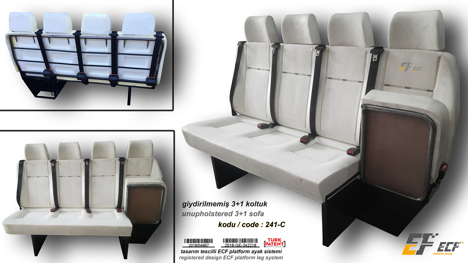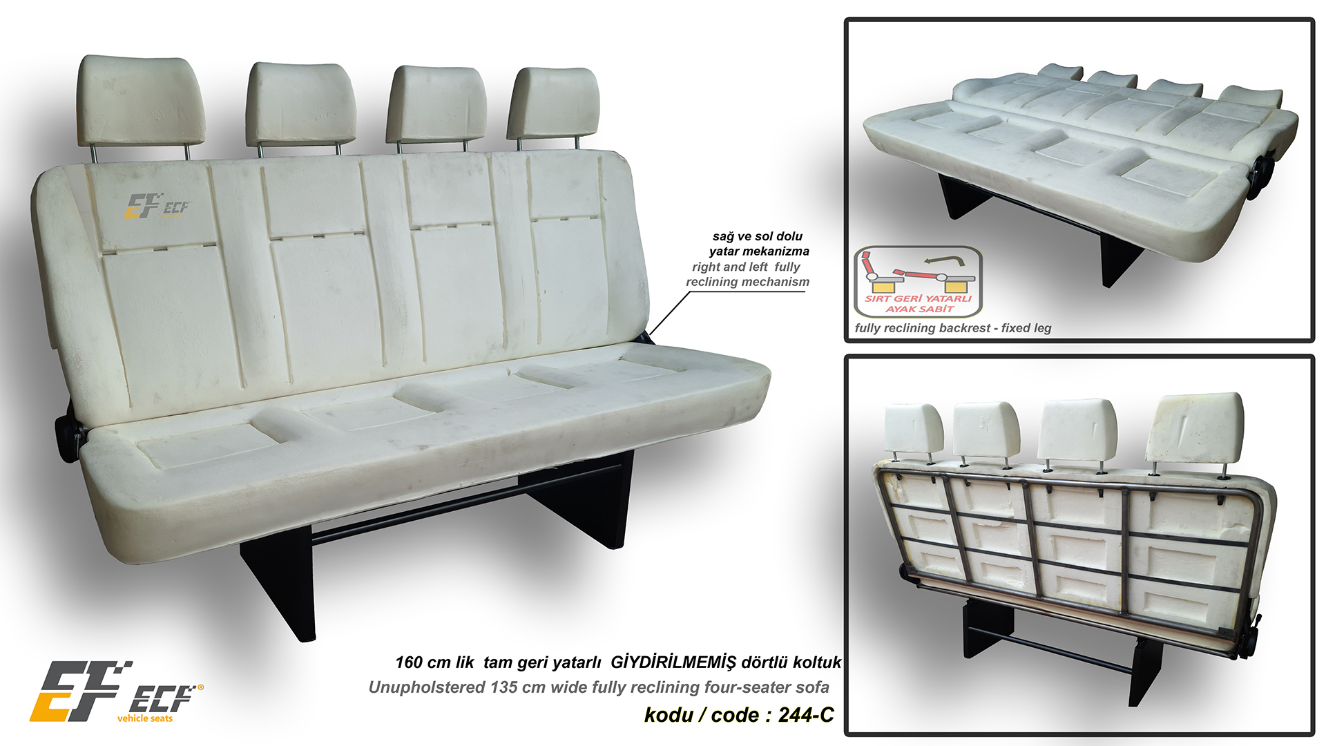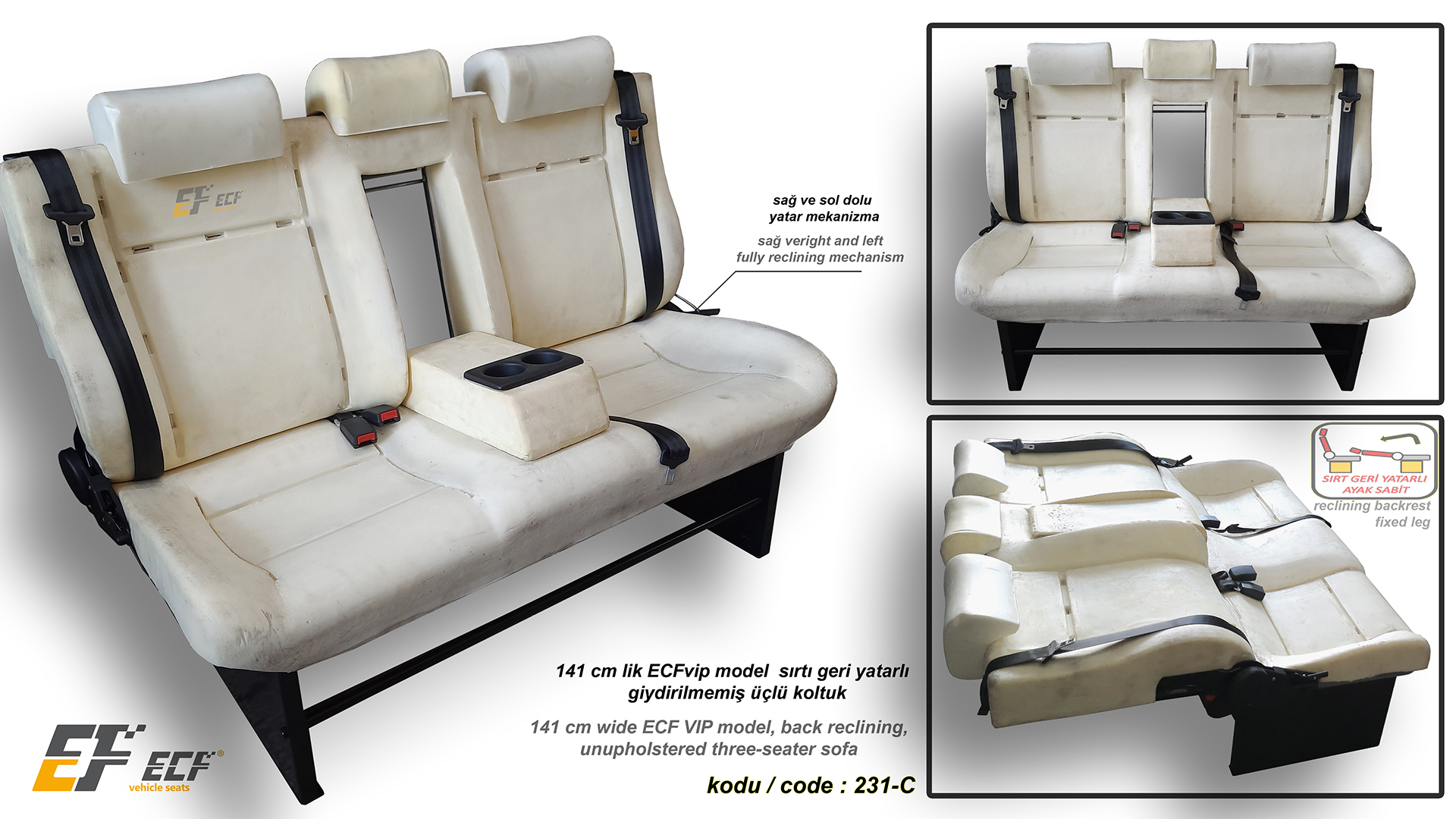 Transporter, Vito, Custom etc Unupholstered 7 seater sofa set consisting of a 128 cm fully reclining narrow type ECF VIP model three seater sofa and a fixed 3+1 seat