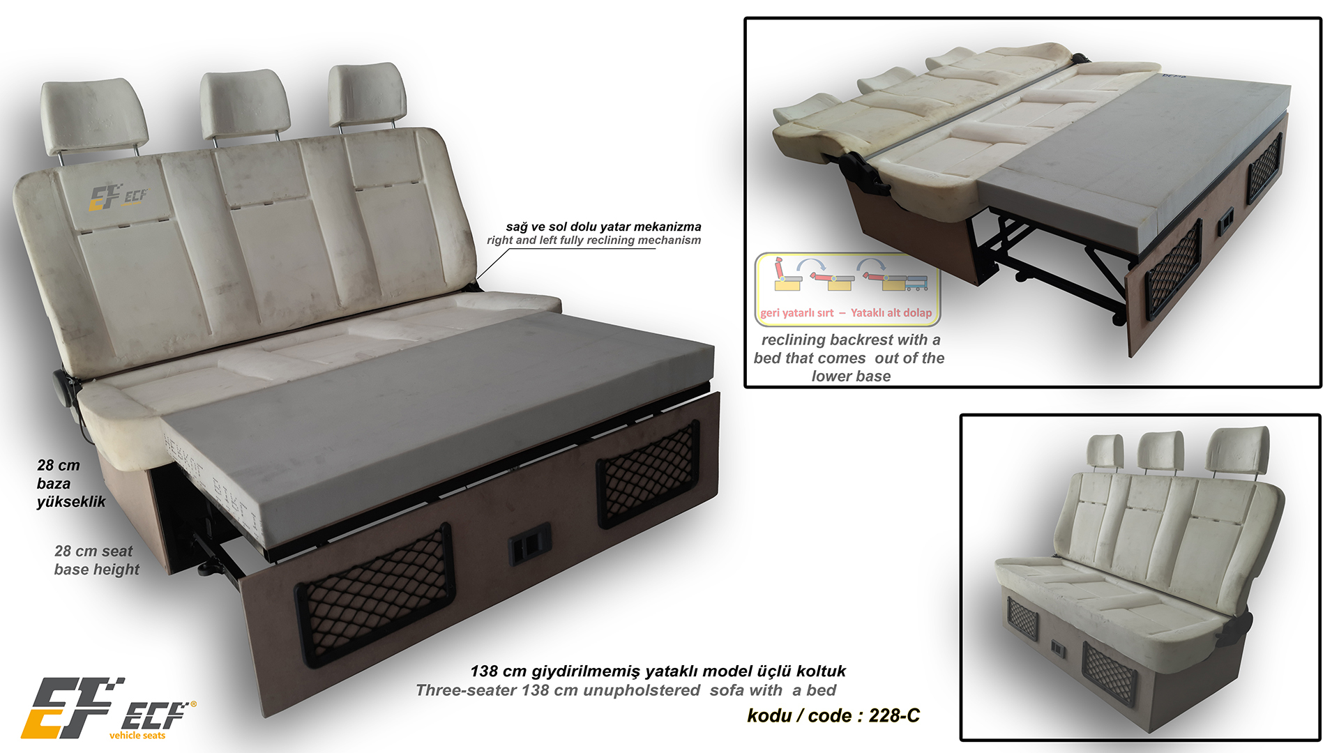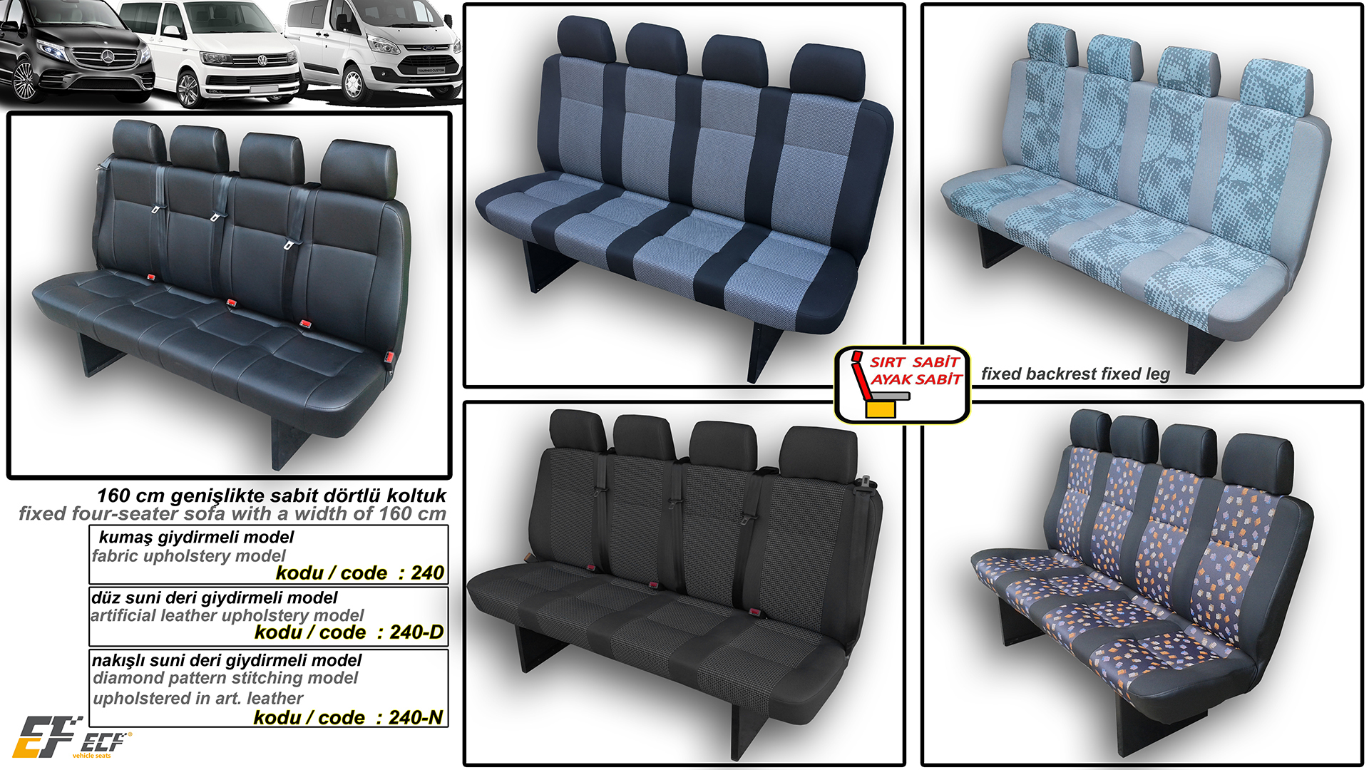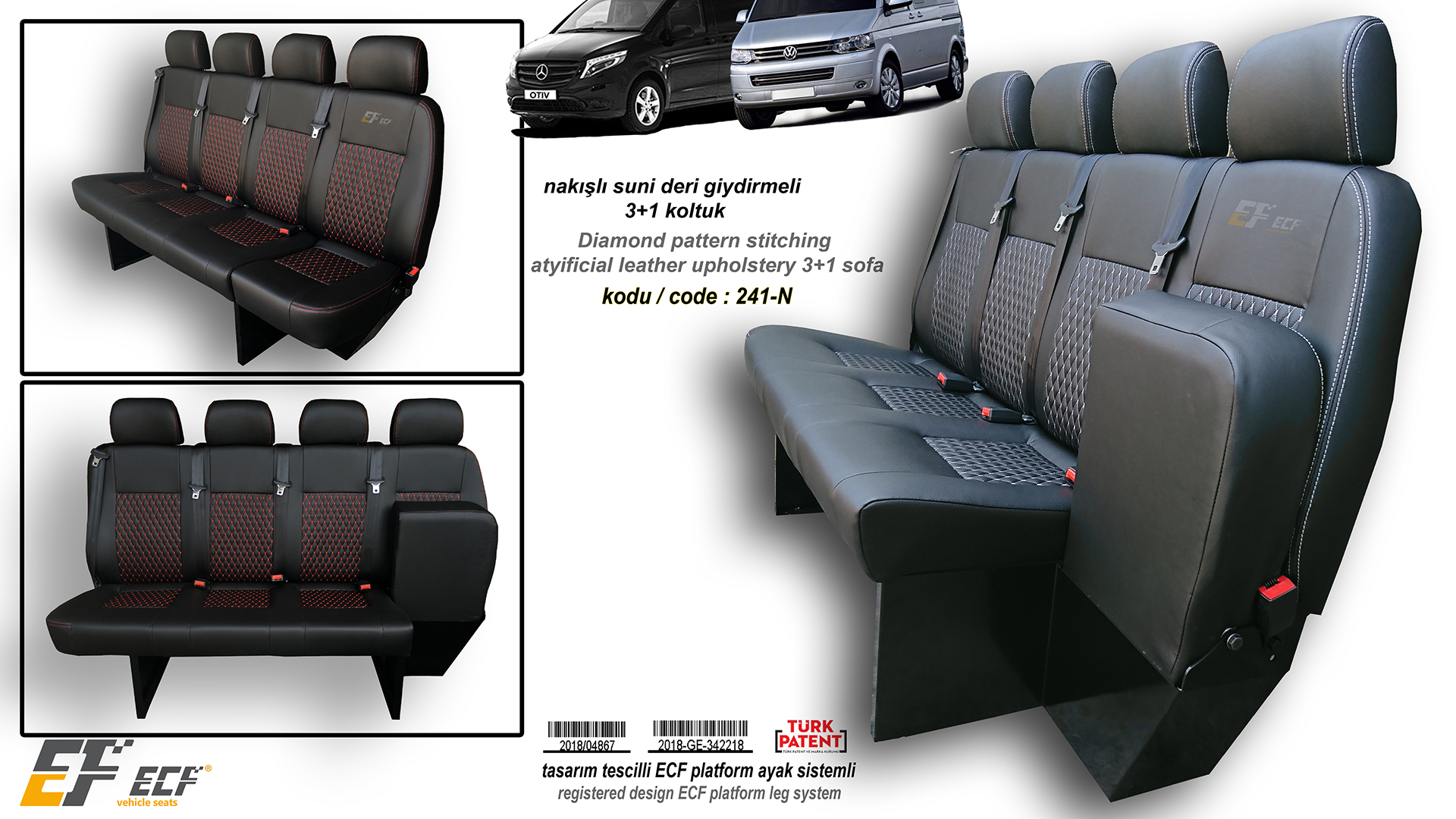 Transporter, Vito, Custom etc 135 cm fully reclining three seater sofa and fixed 3+1 sofa ECF Class model upholstered in artificial leather 7 seater set