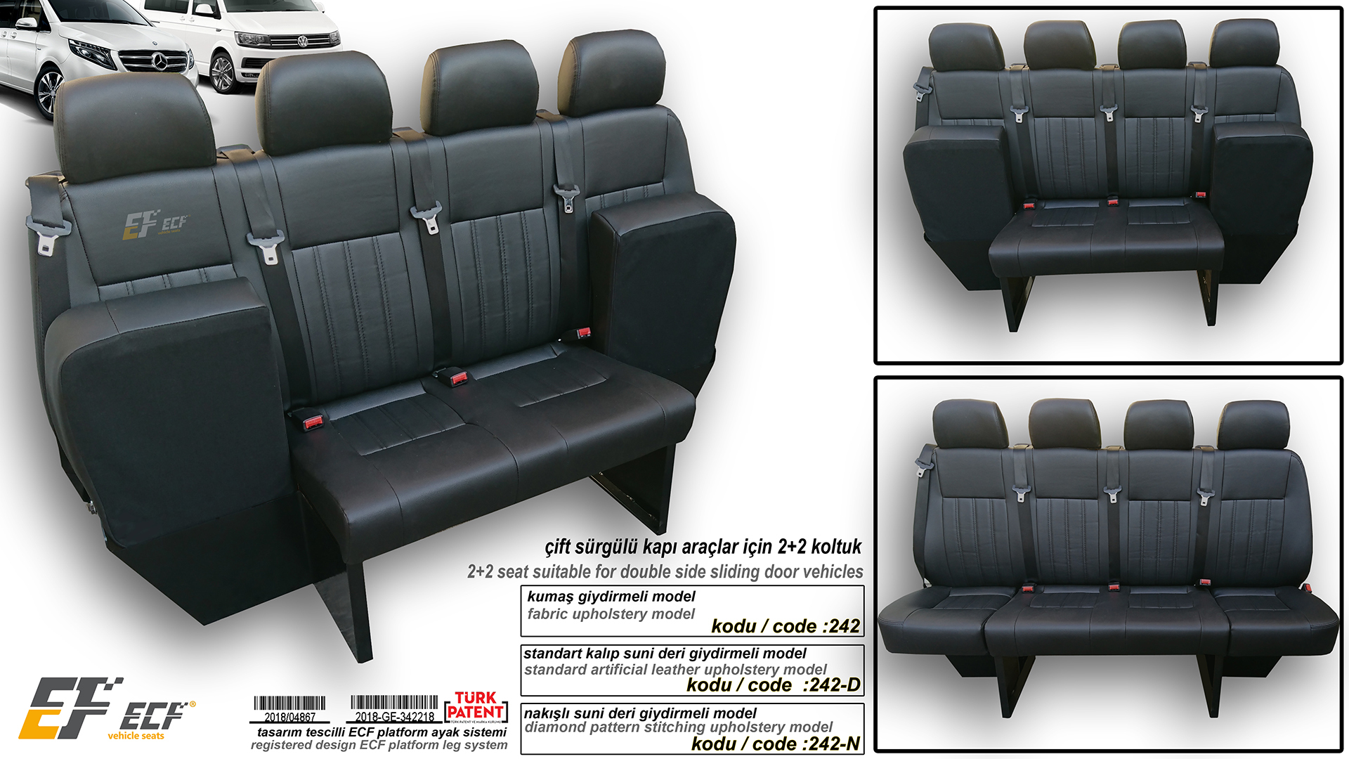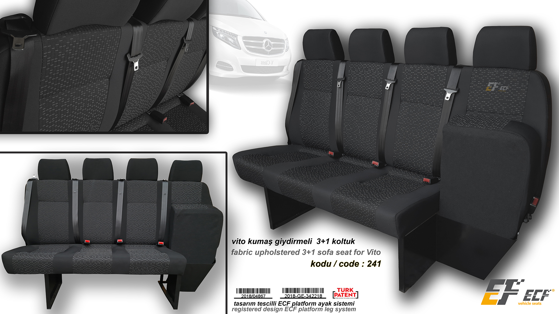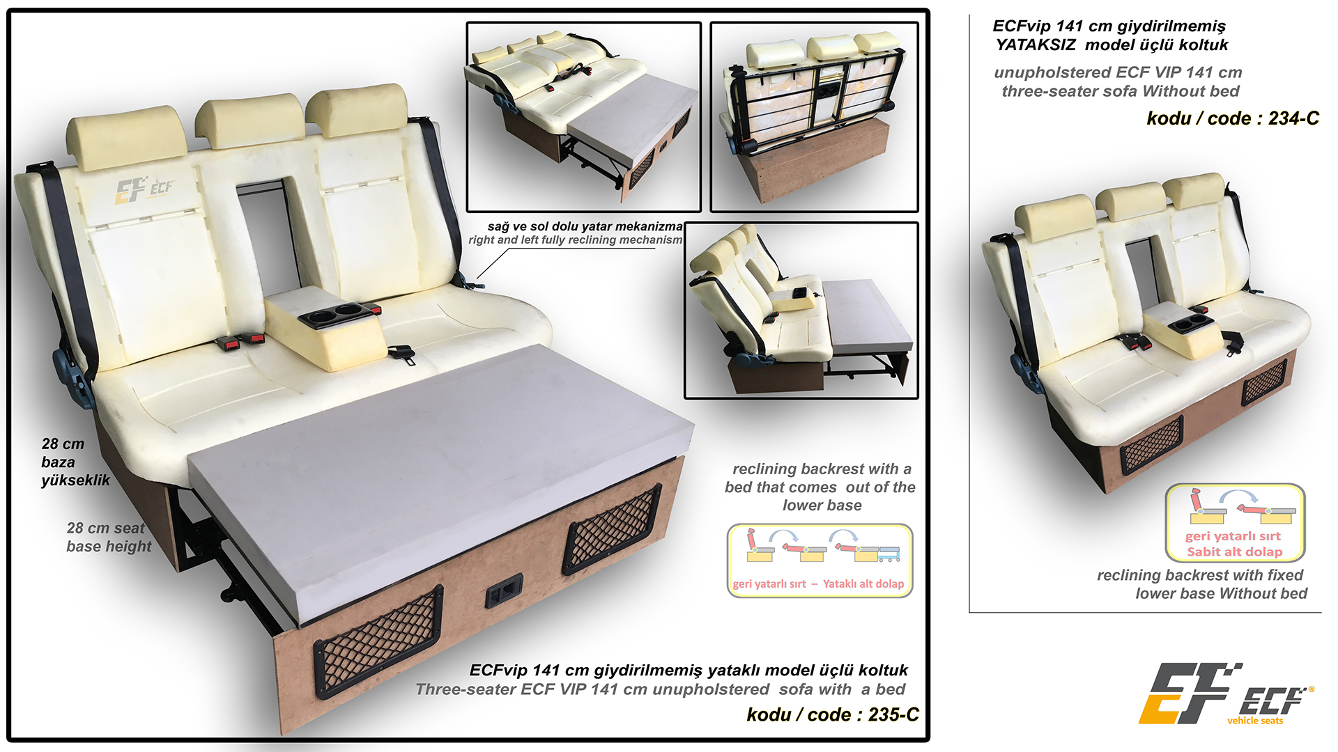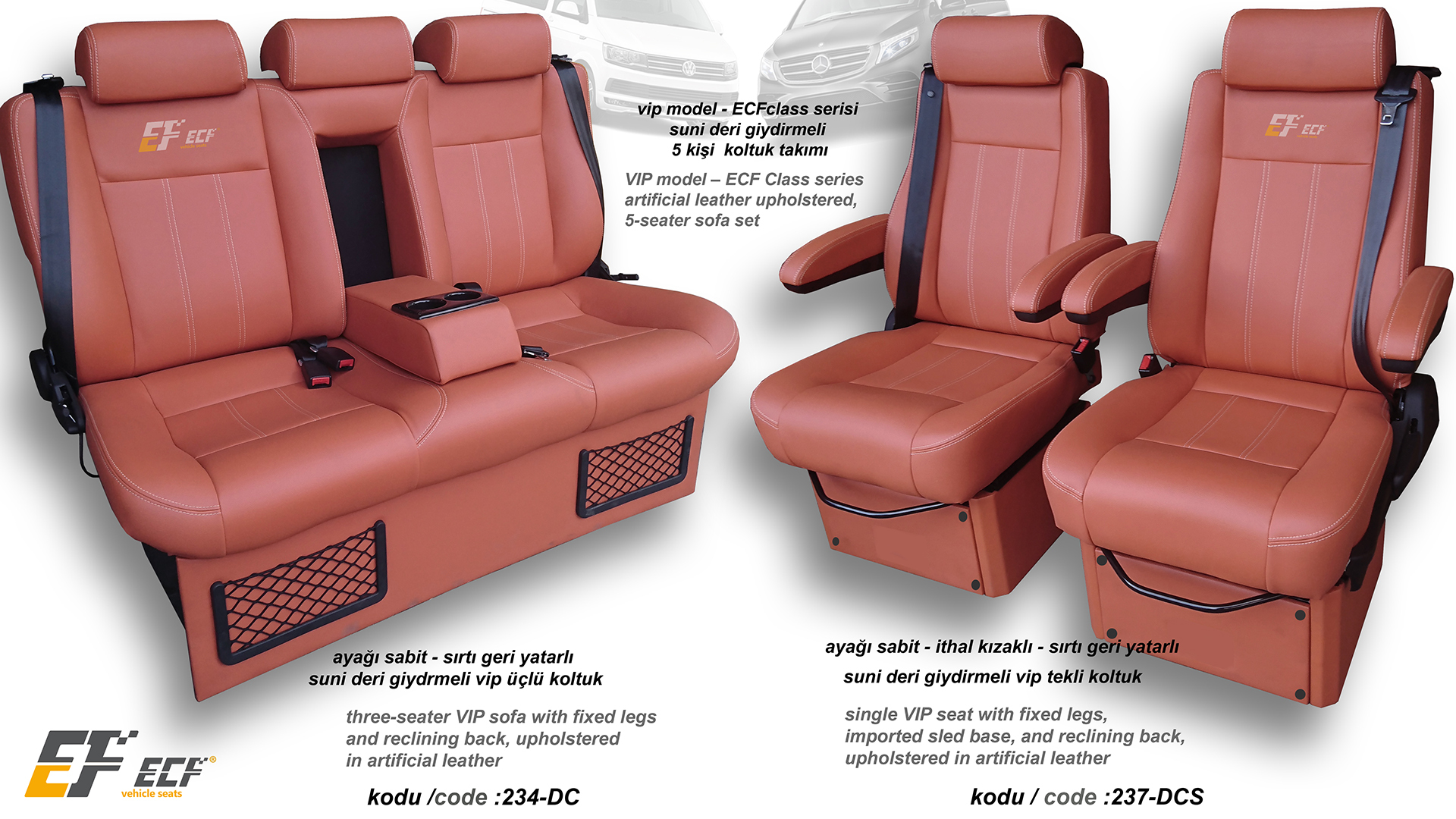 Transporter, Vito, Custom etc 135 cm fully reclining three seater sofa and fixed 3+1 sofa ECF Class model upholstered in artificial leather 7 seater set