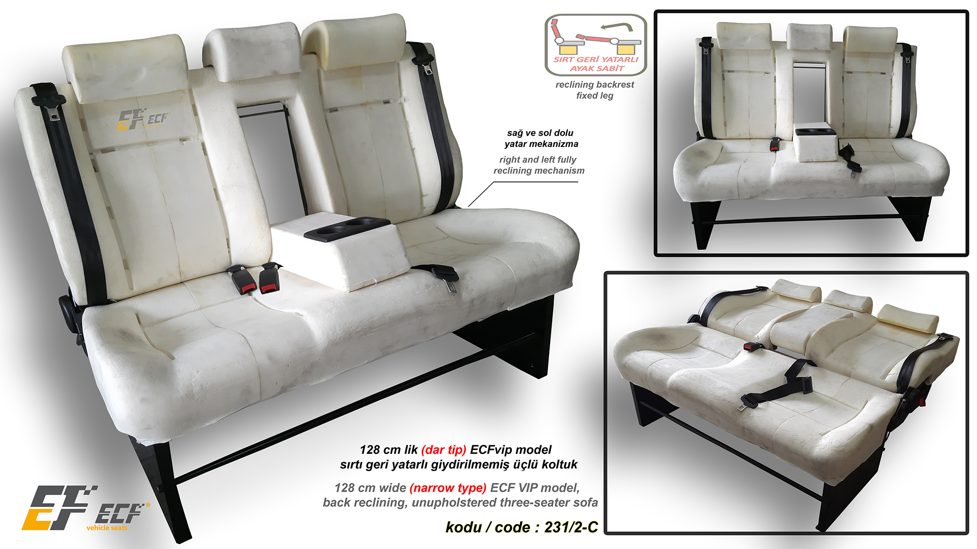 128 cm wide (narrow type) ECF VIP model, back reclining unupholstered three seater sofa
