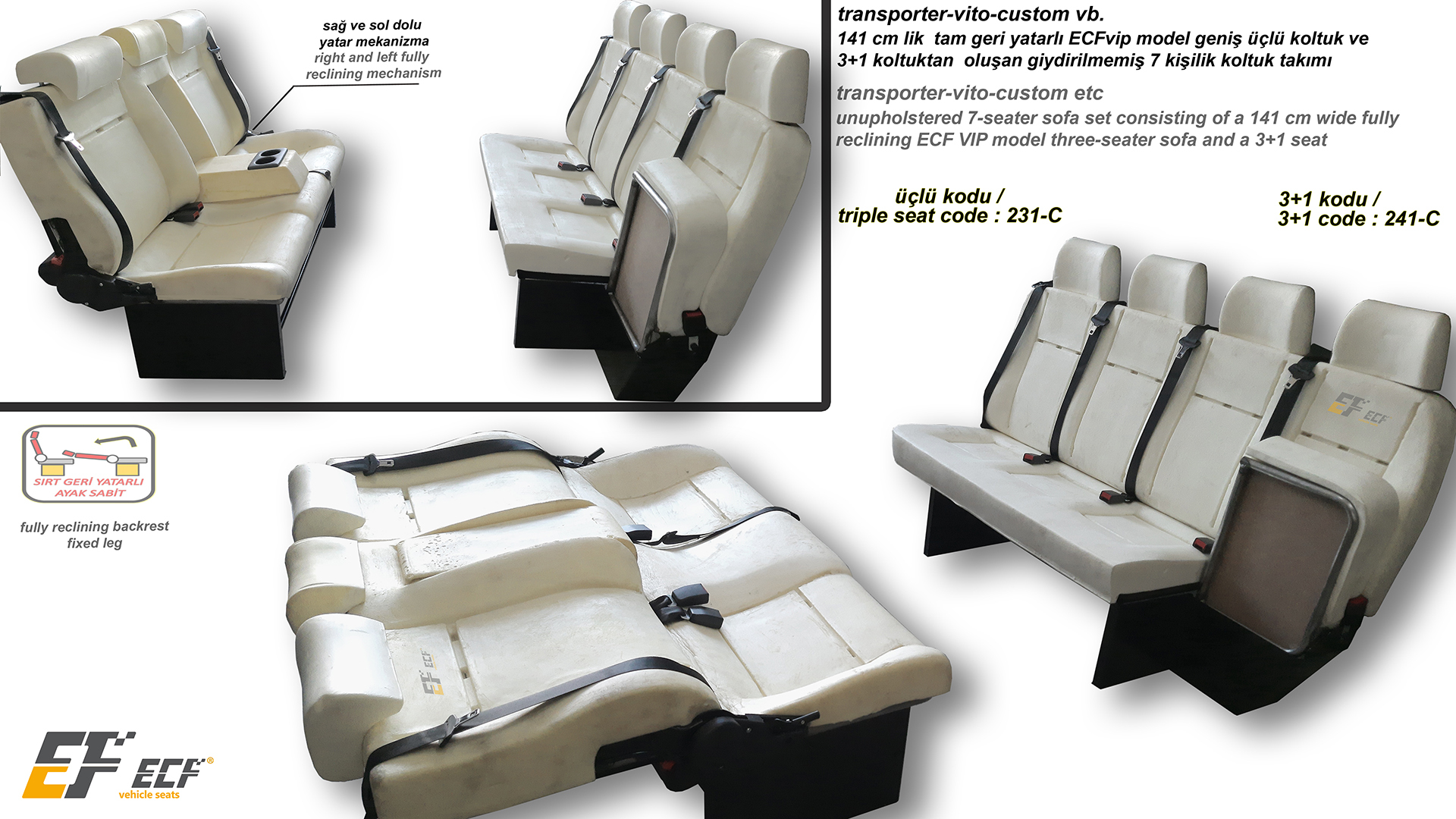 Transporter, Vito, Csutom etc Unupholstered 7 seater sofa set consisting of a 141 cm wide fully reclining ECF VIP model three seater sofa and a 3+1 seat